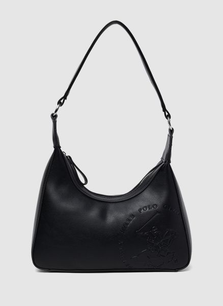 Logo Embossed Zippered Shoulder Bag