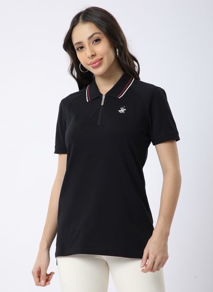 Embellished Zipper Neck Polo T-Shirt